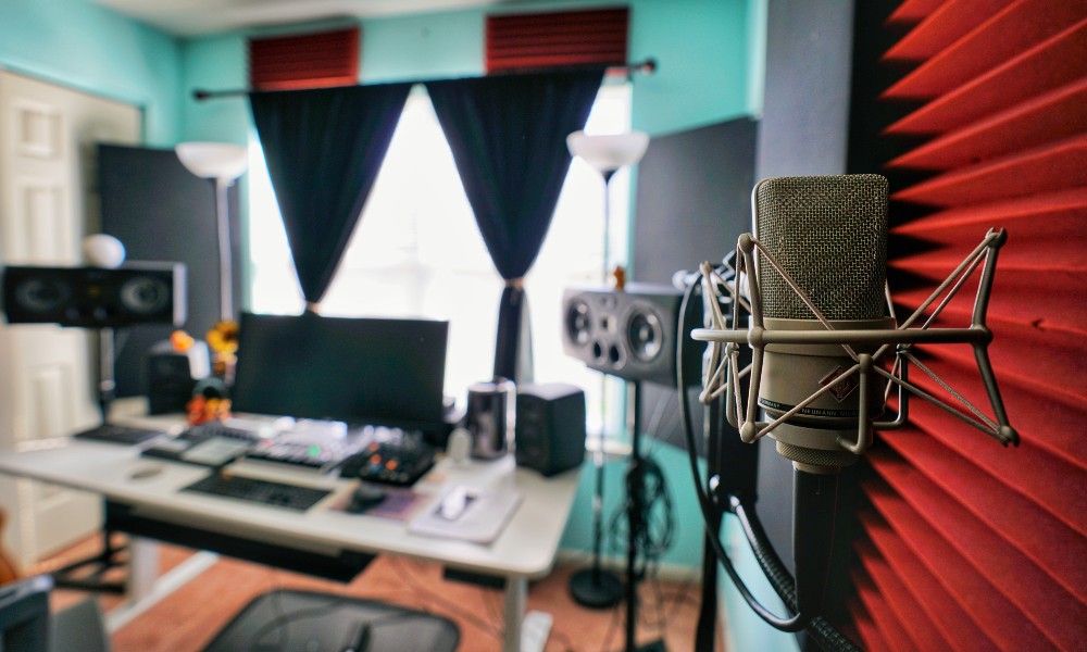 Hang up music-themed posters, acoustic foam panels (which double as sound dampeners), or even LED music visualizers to create a concert-like ambiance.